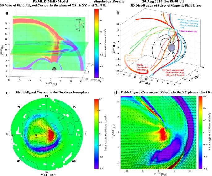 研究チームは、「DMSP」4基が観測したデータをもとに、3D磁気圏モデリングによって宇宙ハリケーンの様子を表した3D画像を作成した。