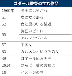 短編映画から撮り始め、長編デビュー作としてジャン=ポール・ベルモンドさんを主演に「勝手にしやがれ」を公開。即興演出や街頭ロケ、独創的な映画編集など新たな手法で映画界に革命を巻き起こし「女は女である」「気狂いピエロ」などヌーベルバーグの代表作を次々と生み出した。